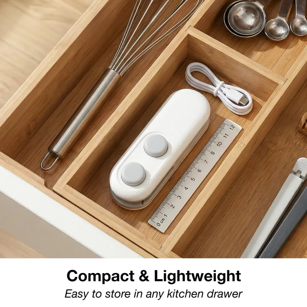 This all-in-one mini bag sealer comes with a hidden cutter, allowing you to seal and cut bags using a single device. Simply press the button to seal or cut. It delivers better sealing results than traditional clips and helps you reopen and reseal bags easily.